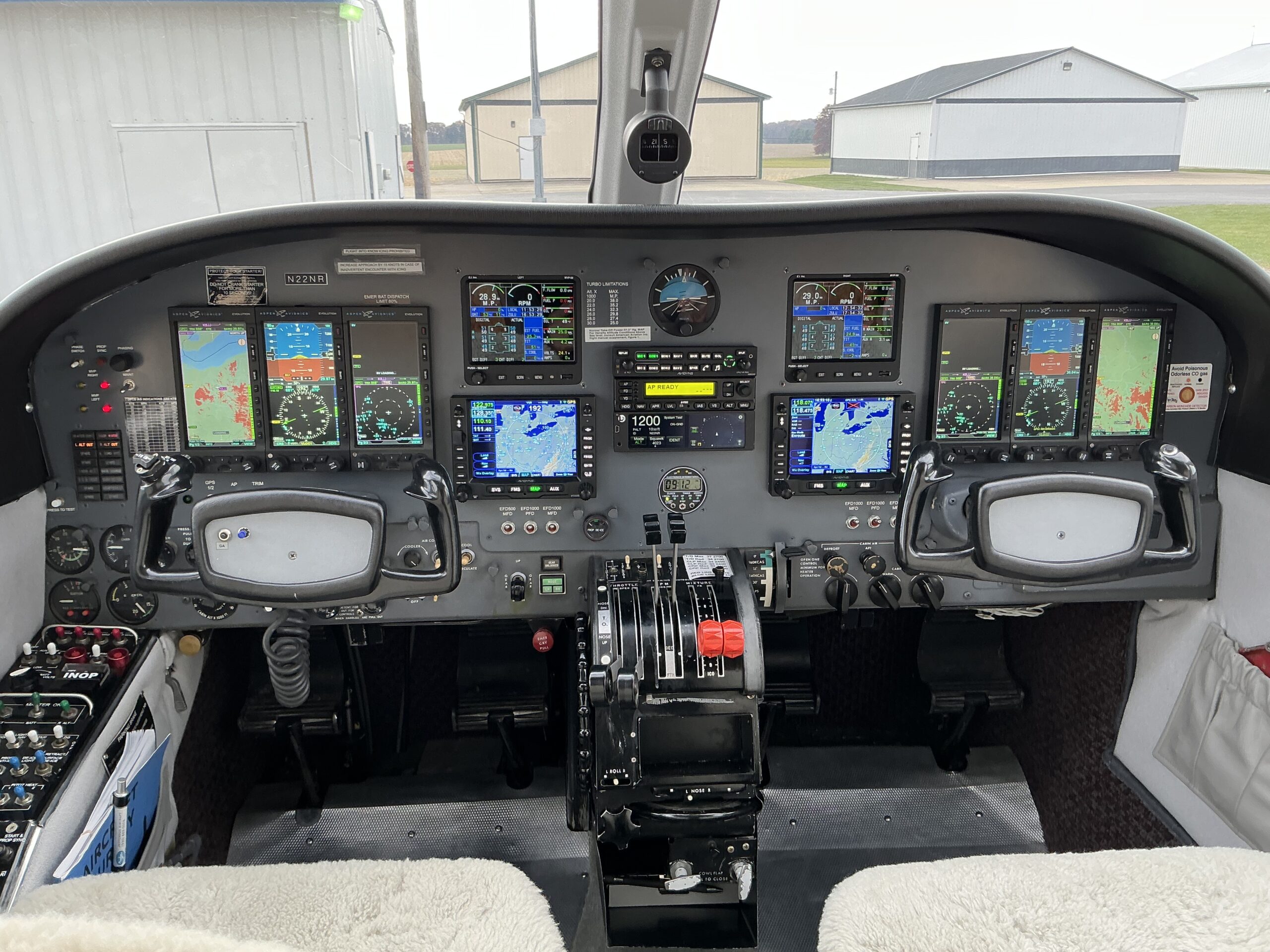 This aircraft has undergone an extensive three year period of maintenance and restoration, that includes new engine frame structure, canted bulkheads, spar inspection panels, engine beam replacement, new windshields, new ice boots, upgraded avionics, new exhaust, turbos, overhauled engines, upgraded American Aviation intercoolers, A/C system fixes, overhauled janitrol heater, overhauled props, updated interior, new skytech starters, new tires, and also is the only known fixed wing aircraft in North America with six Aspen screens!